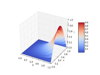 Exemple de résultat obtenu en TP - distribution de température dans un domaine 2D